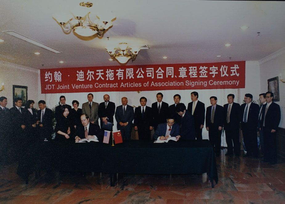 2000年8月,天拖公司作為國內(nèi)第一家大型農(nóng)機生產(chǎn)企業(yè)與美國約翰·迪爾公司合資組建了約翰·迪爾天拖公司,總投資2999萬美元,主要經(jīng)營拖拉機及其它農(nóng)業(yè)機械。2012年由于合資雙方不同的發(fā)展戰(zhàn)略,合資公司解體。